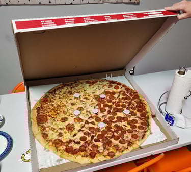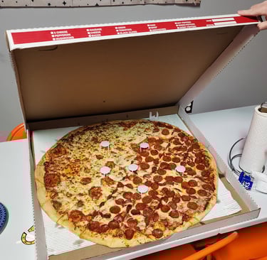 Celebrating his birthday with us with the largest pizza I have ever seen.